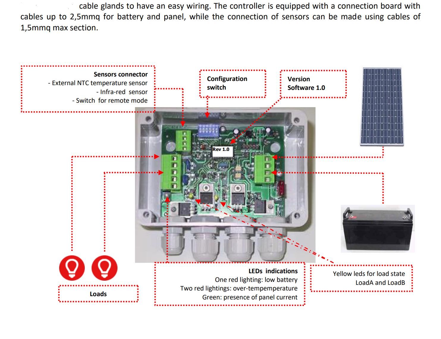 This is IP64 weather proofed to stop inward ingress of water, so the item can be left out doors for ease of application. 7A maximum capacity 12w light controller driver for LED luminaries, will prevent the batteries from over charging and deliver maximum energy.