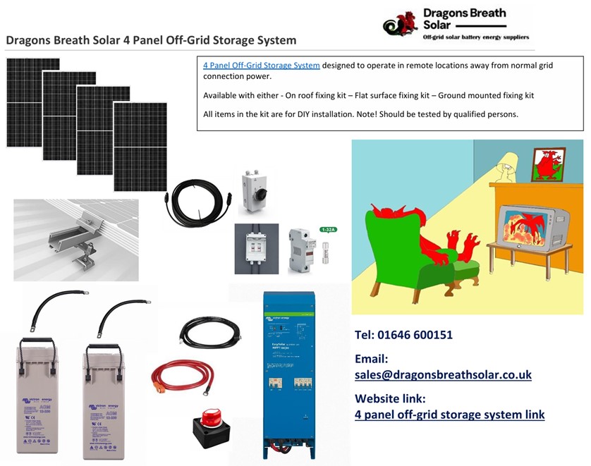 Dragons Breath Solar 4 panel off-grid system kit. Ideal for DIY installations in remote locations
