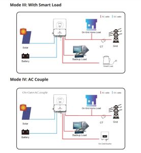 In this link you will find our solar AC charger PV kit variations, which can convert existing panel systems into home solar storage using our hybrid AC charger/inverter and solar battery storage combinations.