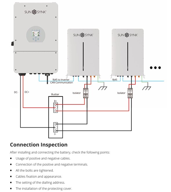 If you wanted to connect two number 5kwh sunsynk batteries together to make a 10kwh storage bank, then follow this pictorial design.
