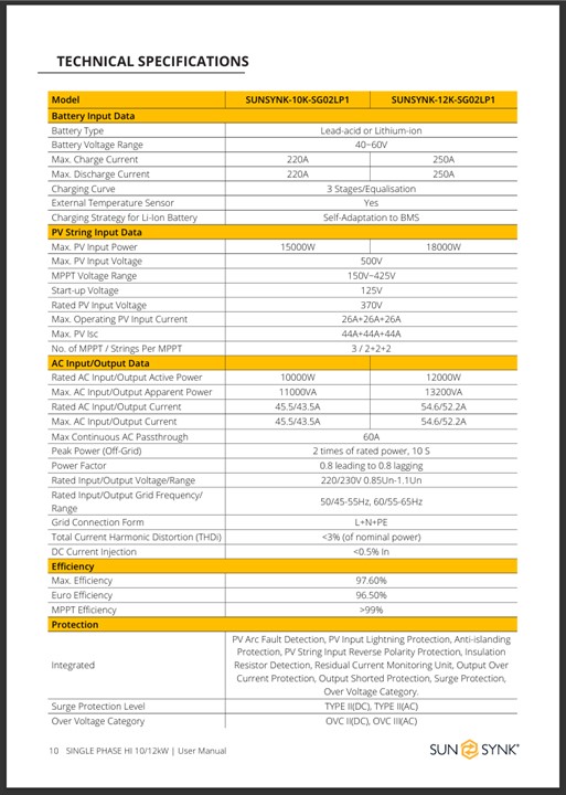 SUNSYNK SINGLE PHASE 230v AC Hybrid Inverters