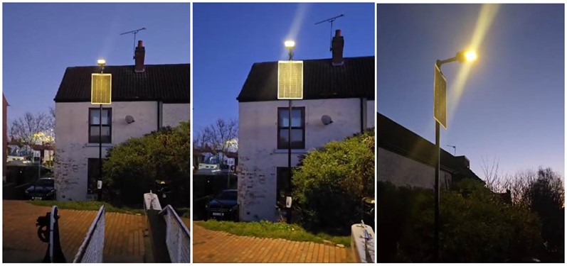 The light units are affixed onto an arm that can be mounted above or below the solar panel, allowing the solar panel and arm to be set separately. This allows the solar panel to always point south to pick up the maximum solar gain following the Sunβs azimuth each day.